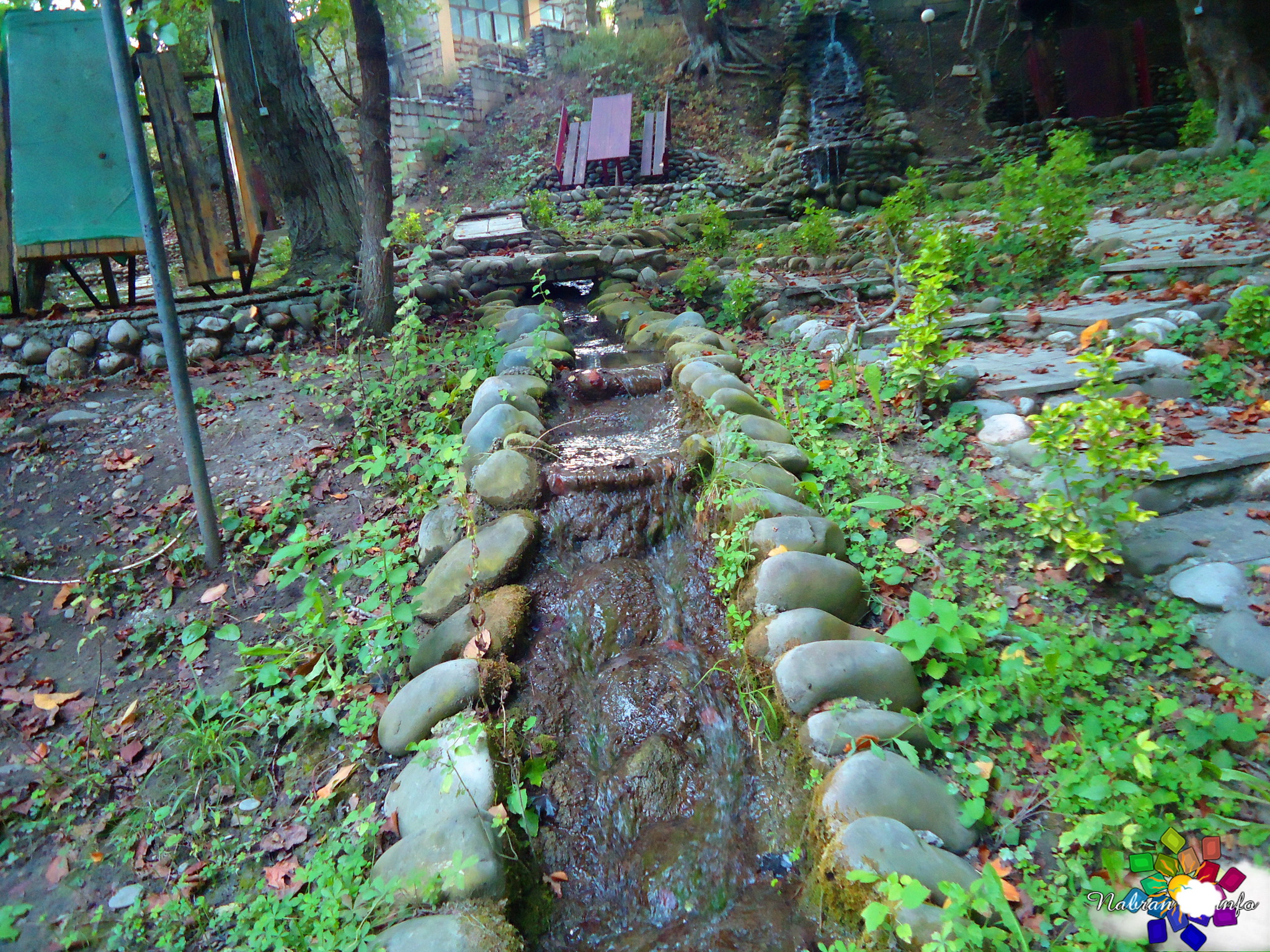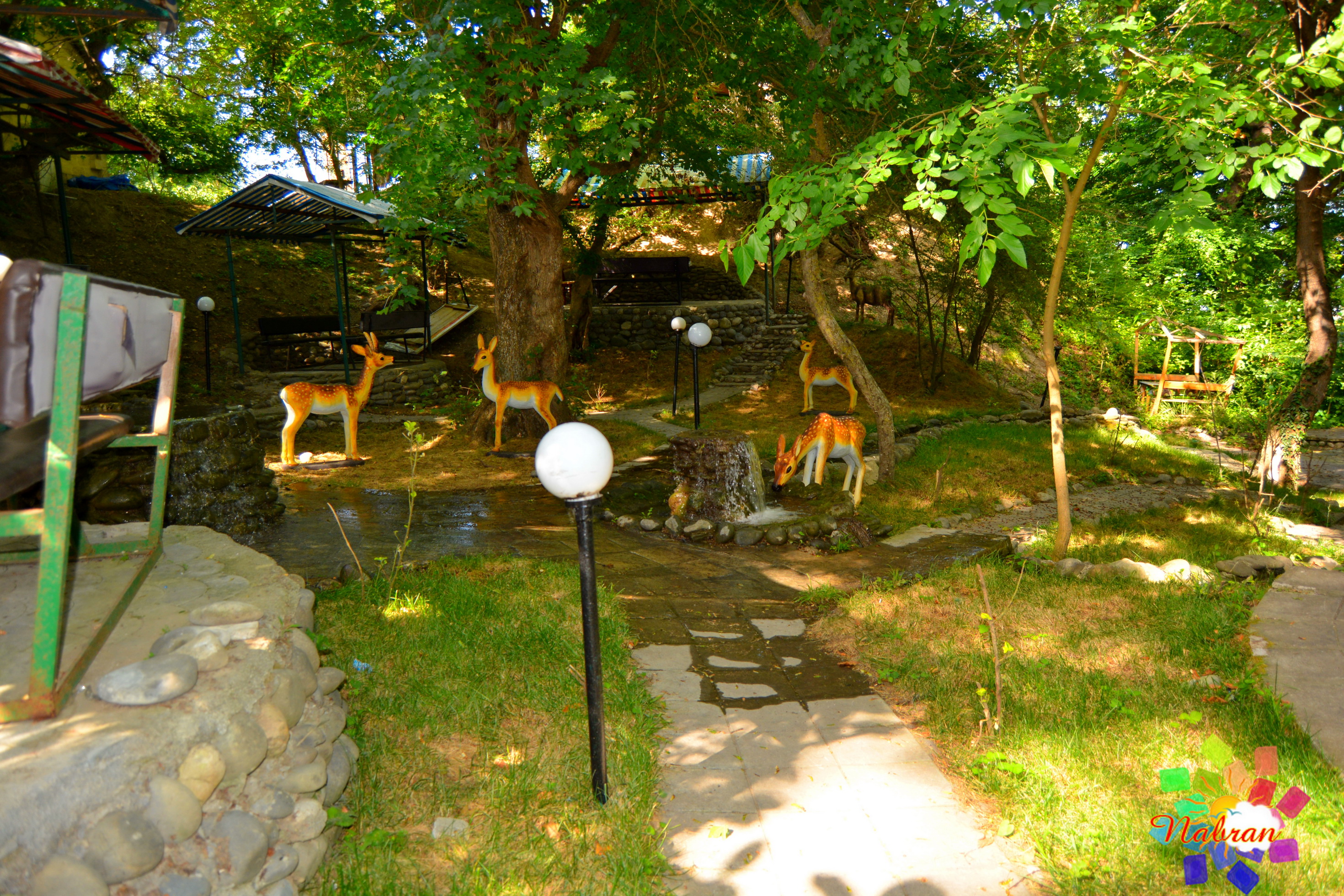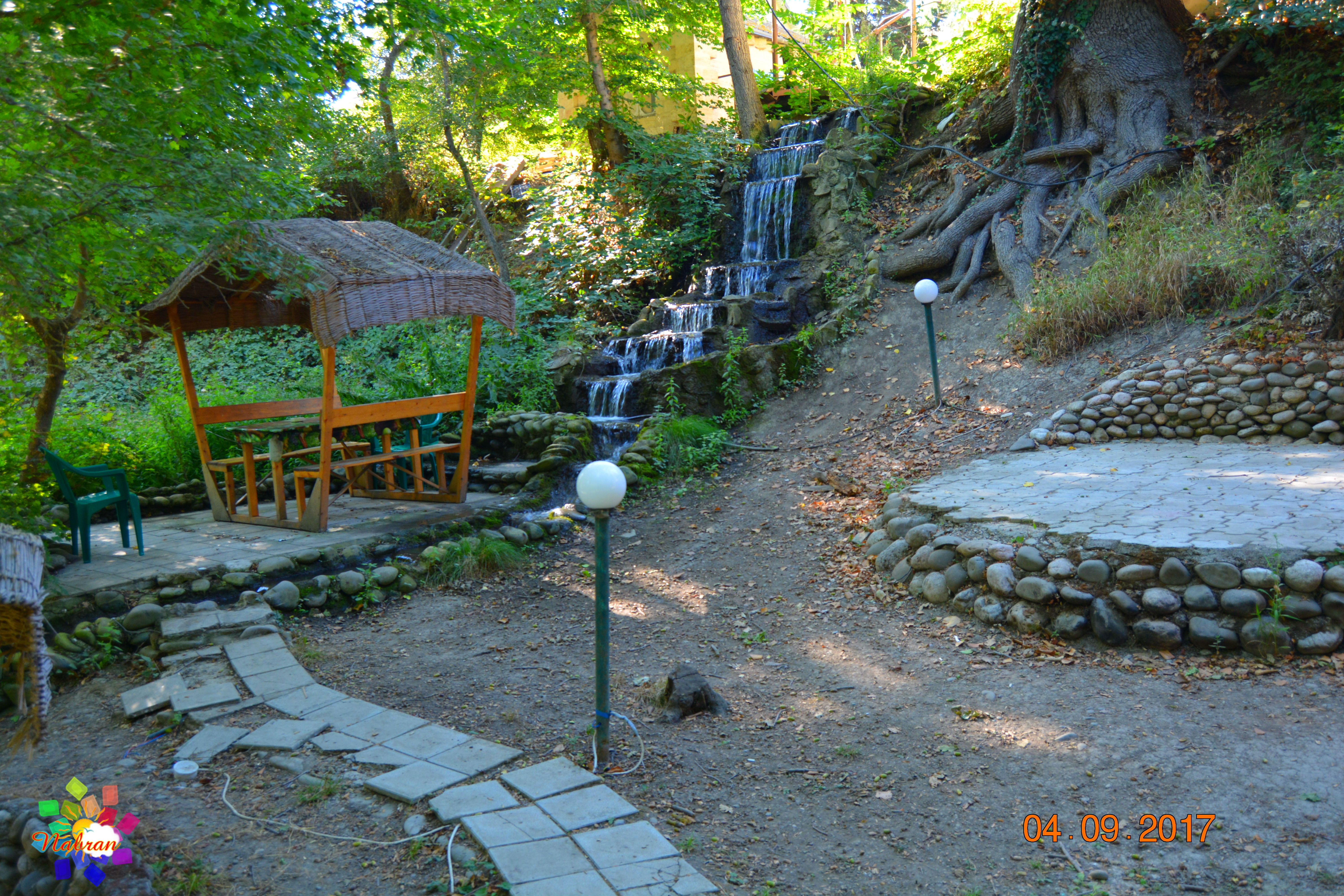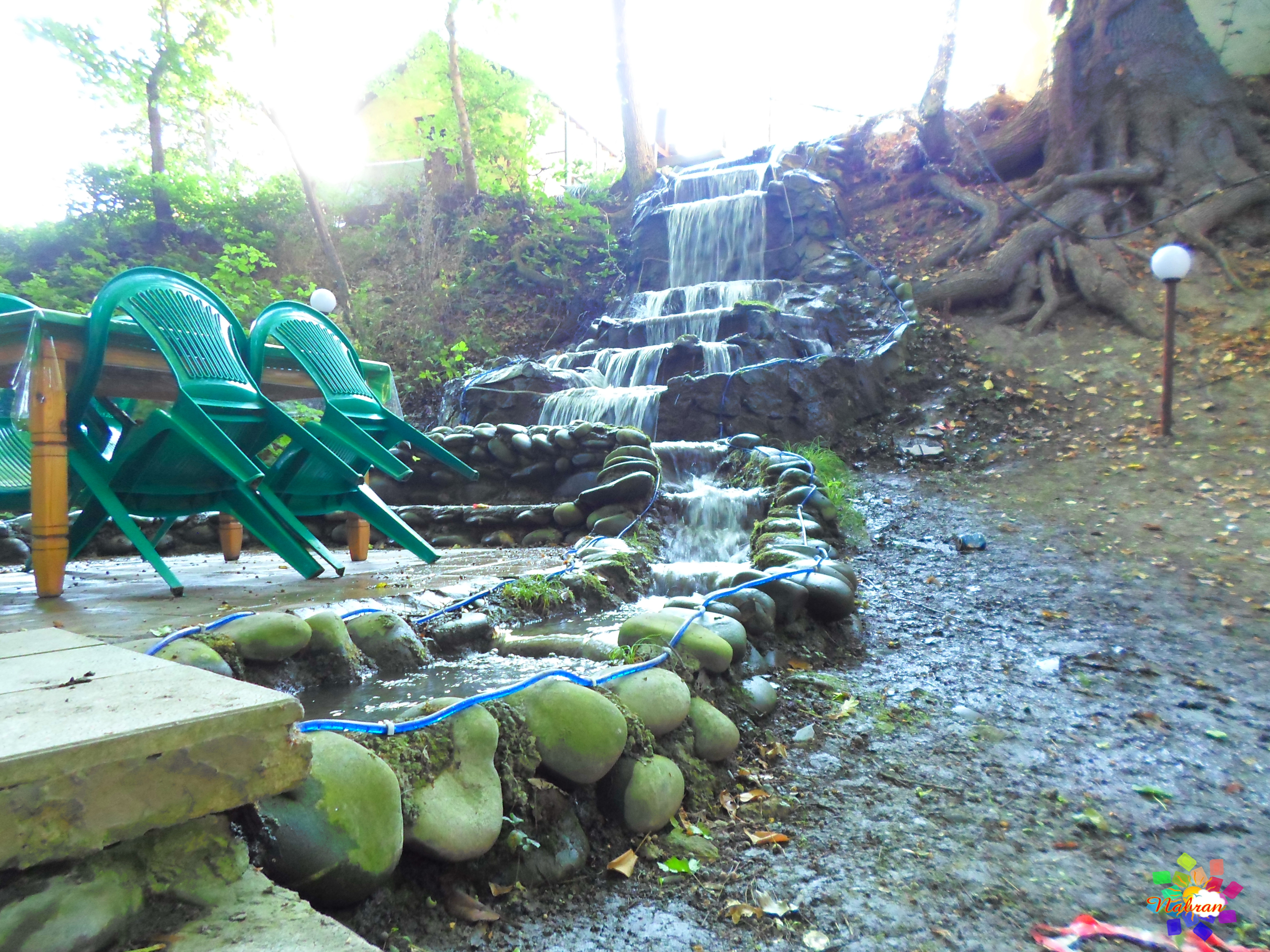 Окружает коттеджи живая, журчащая вода: вдоль спускающихся вниз дорожек переливаются родники и небольшие, уютные водопады, создавая постоянное ощущение свежести и прохлады. А вечером атмосфера преображается — здесь ждёт отличная дискотека с живой музыкой, где можно танцевать под звёздным небом.