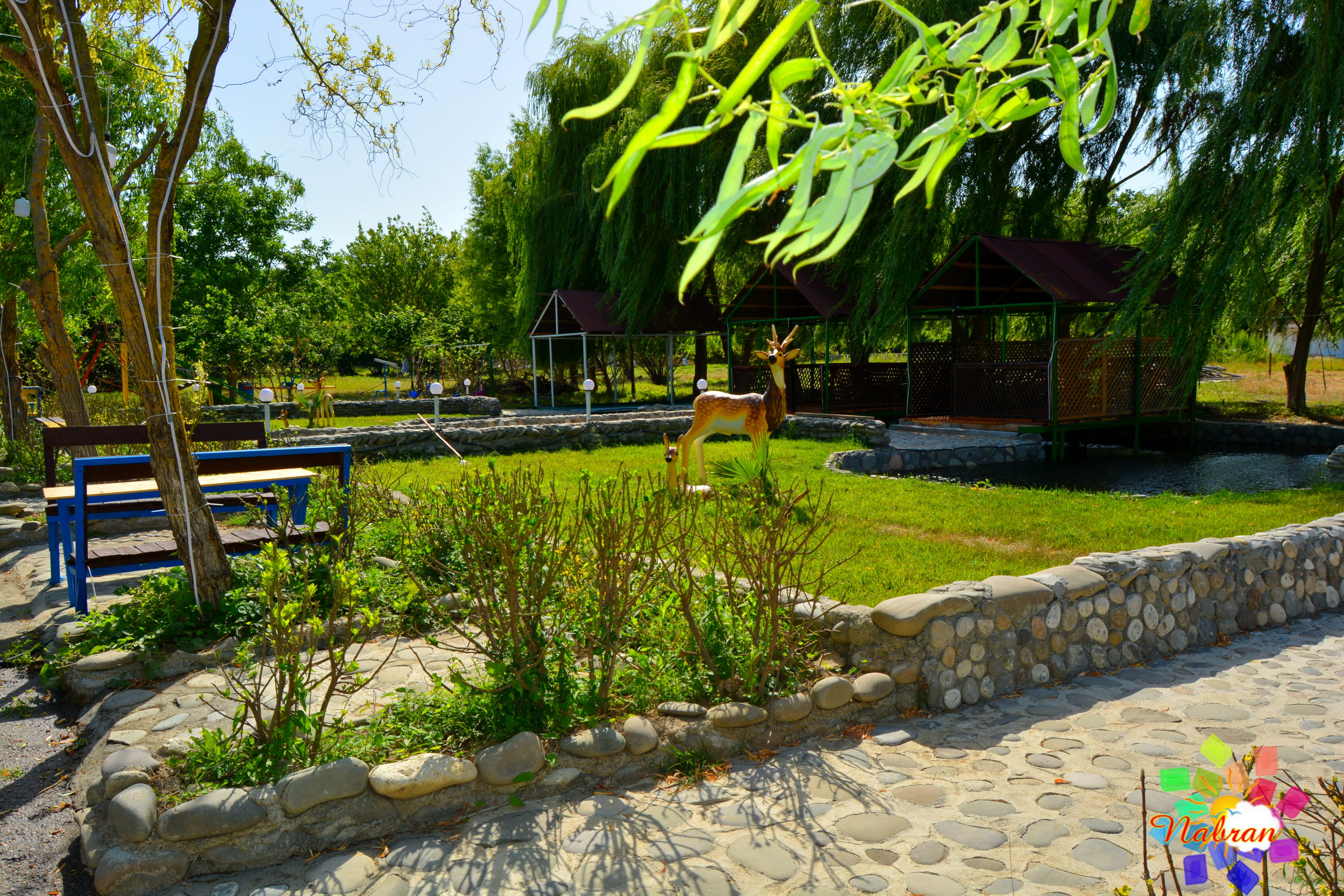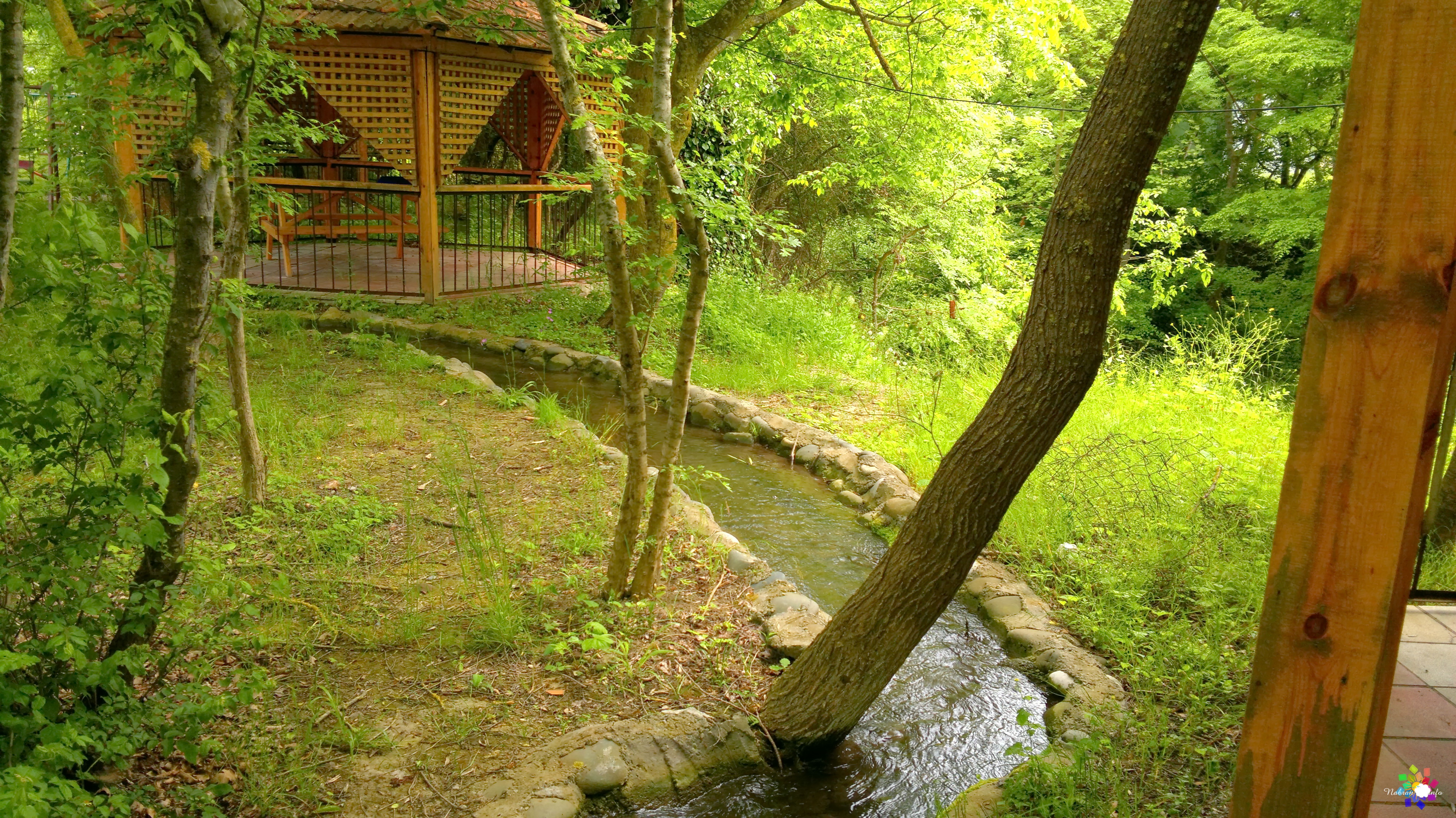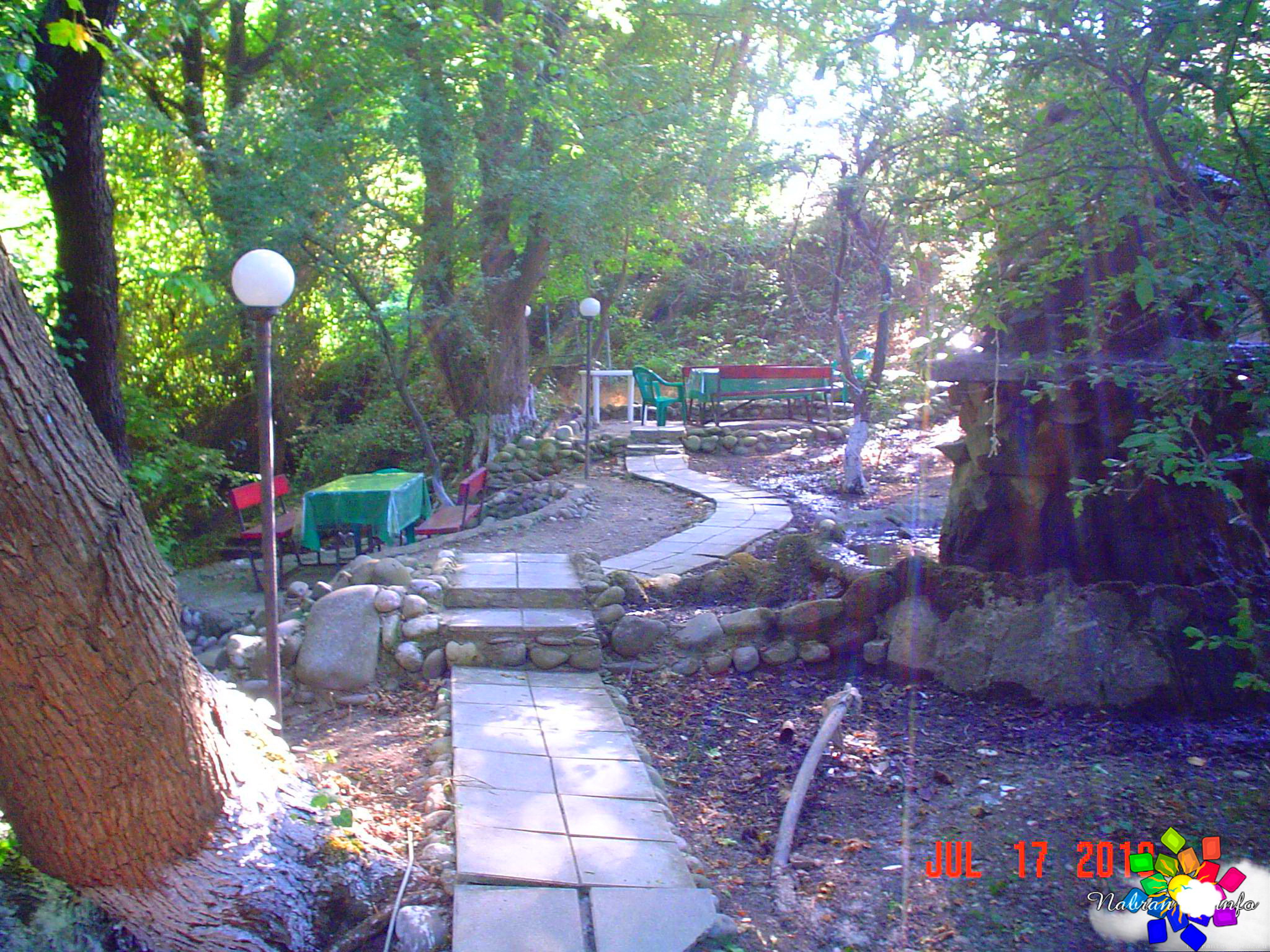 Окружает коттеджи живая, журчащая вода: вдоль спускающихся вниз дорожек переливаются родники и небольшие, уютные водопады, создавая постоянное ощущение свежести и прохлады. А вечером атмосфера преображается — здесь ждёт отличная дискотека с живой музыкой, где можно танцевать под звёздным небом.