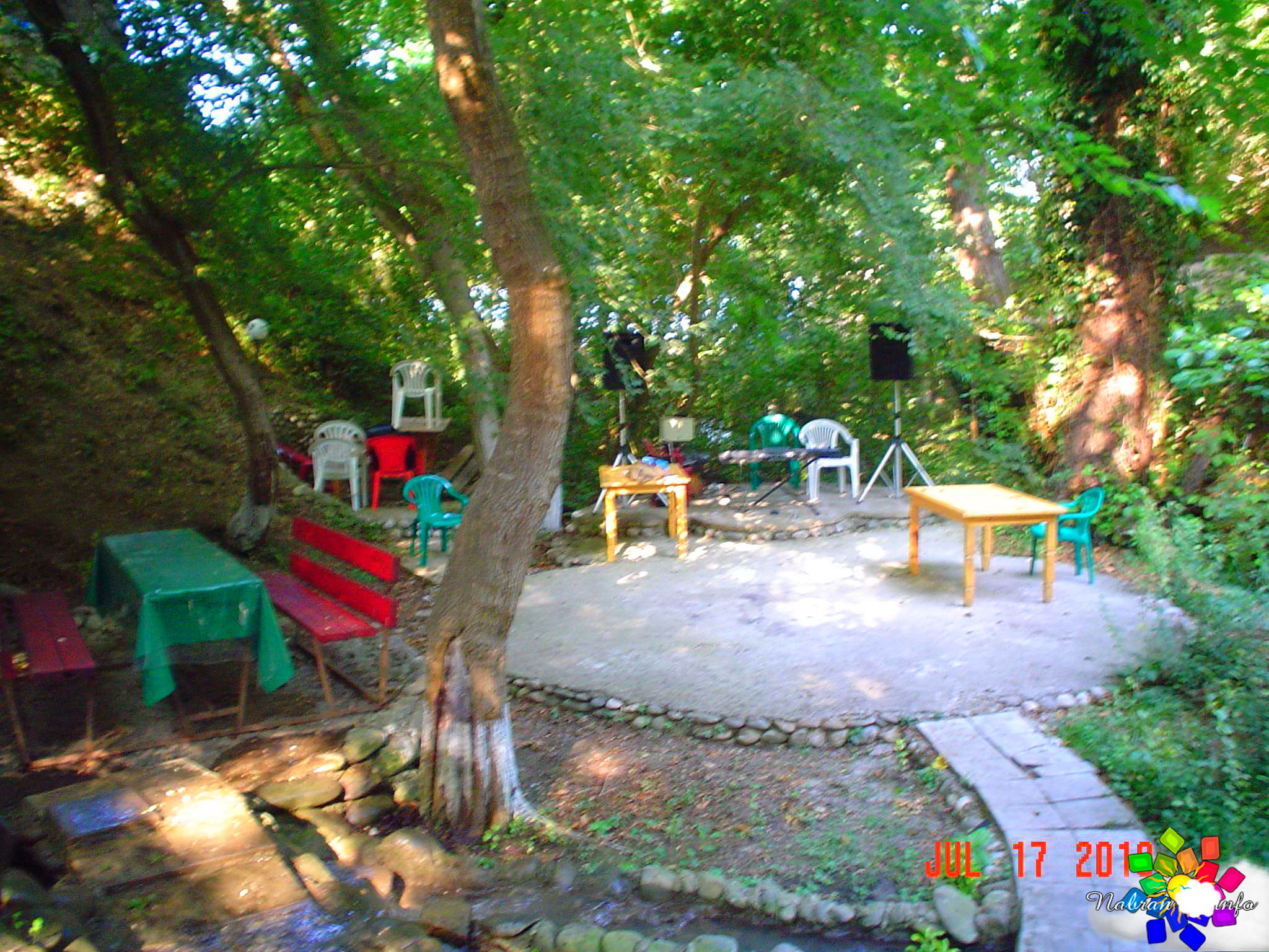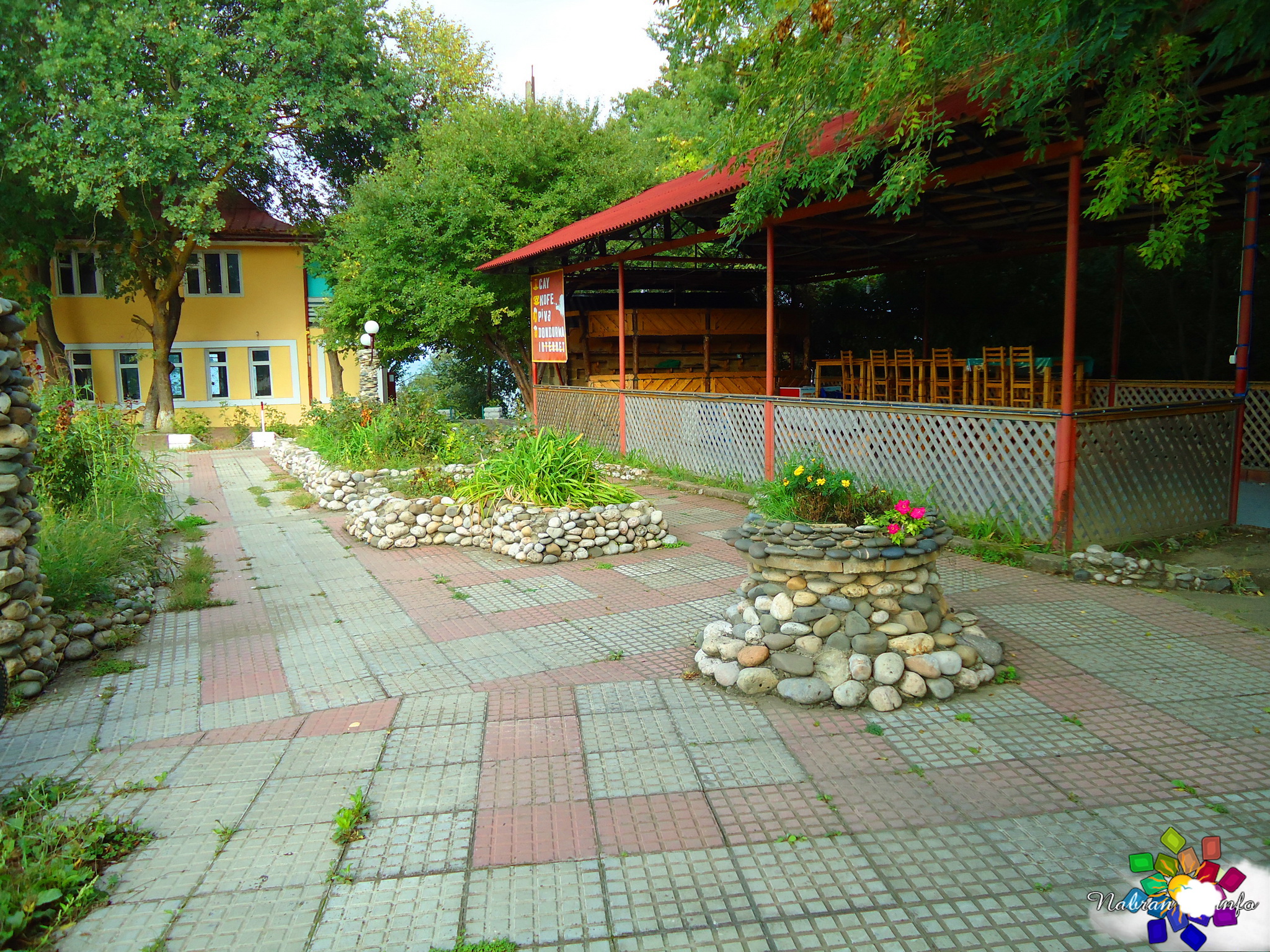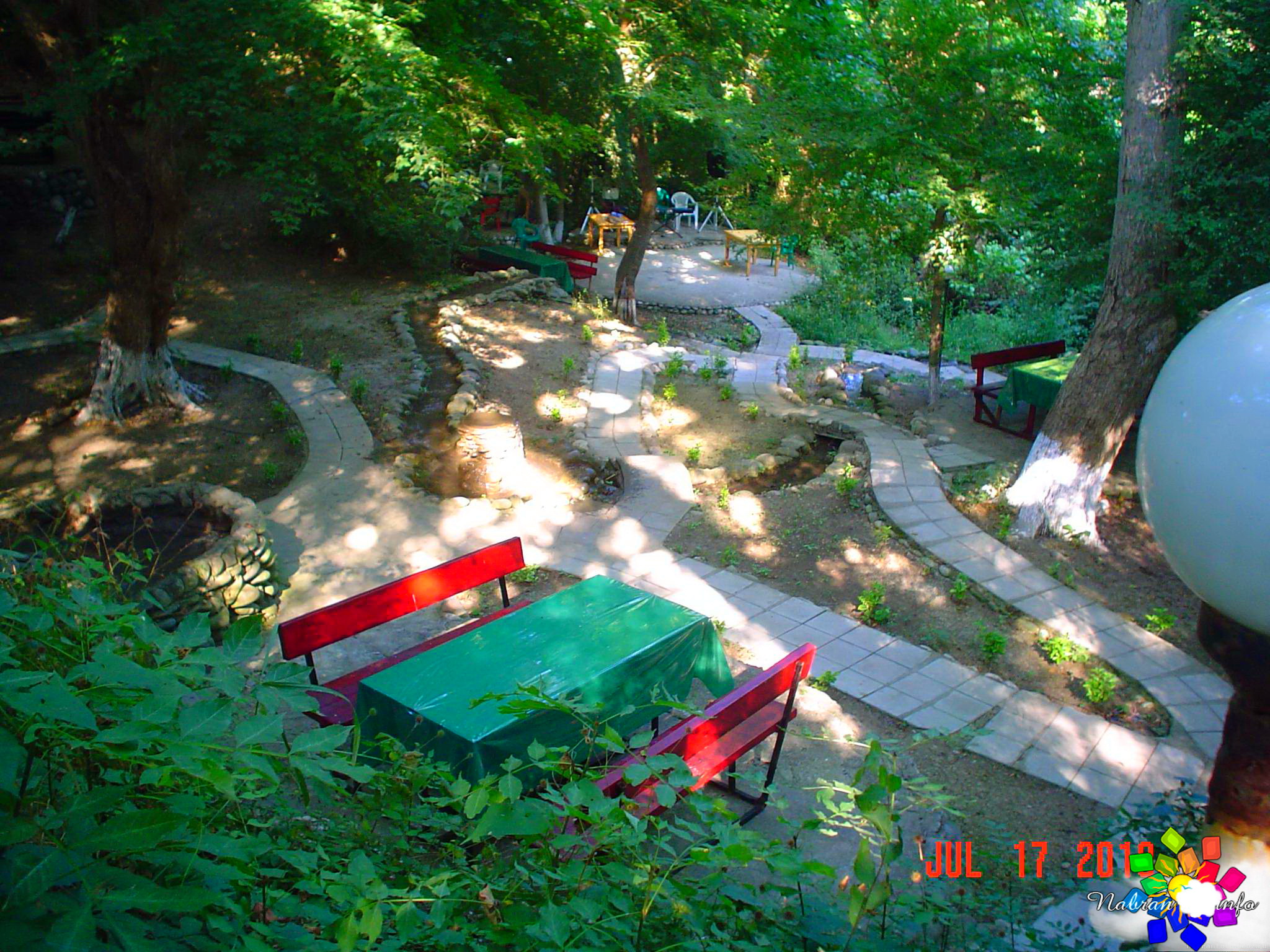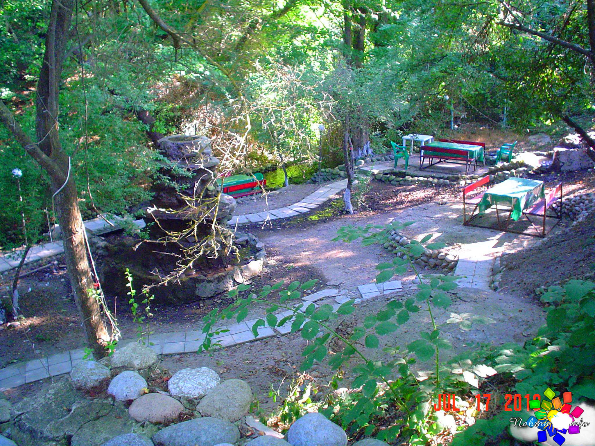 Окружает коттеджи живая, журчащая вода: вдоль спускающихся вниз дорожек переливаются родники и небольшие, уютные водопады, создавая постоянное ощущение свежести и прохлады. А вечером атмосфера преображается — здесь ждёт отличная дискотека с живой музыкой, где можно танцевать под звёздным небом.